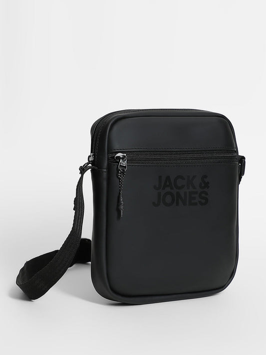 BLACK LOGO PRINT SLING BAG