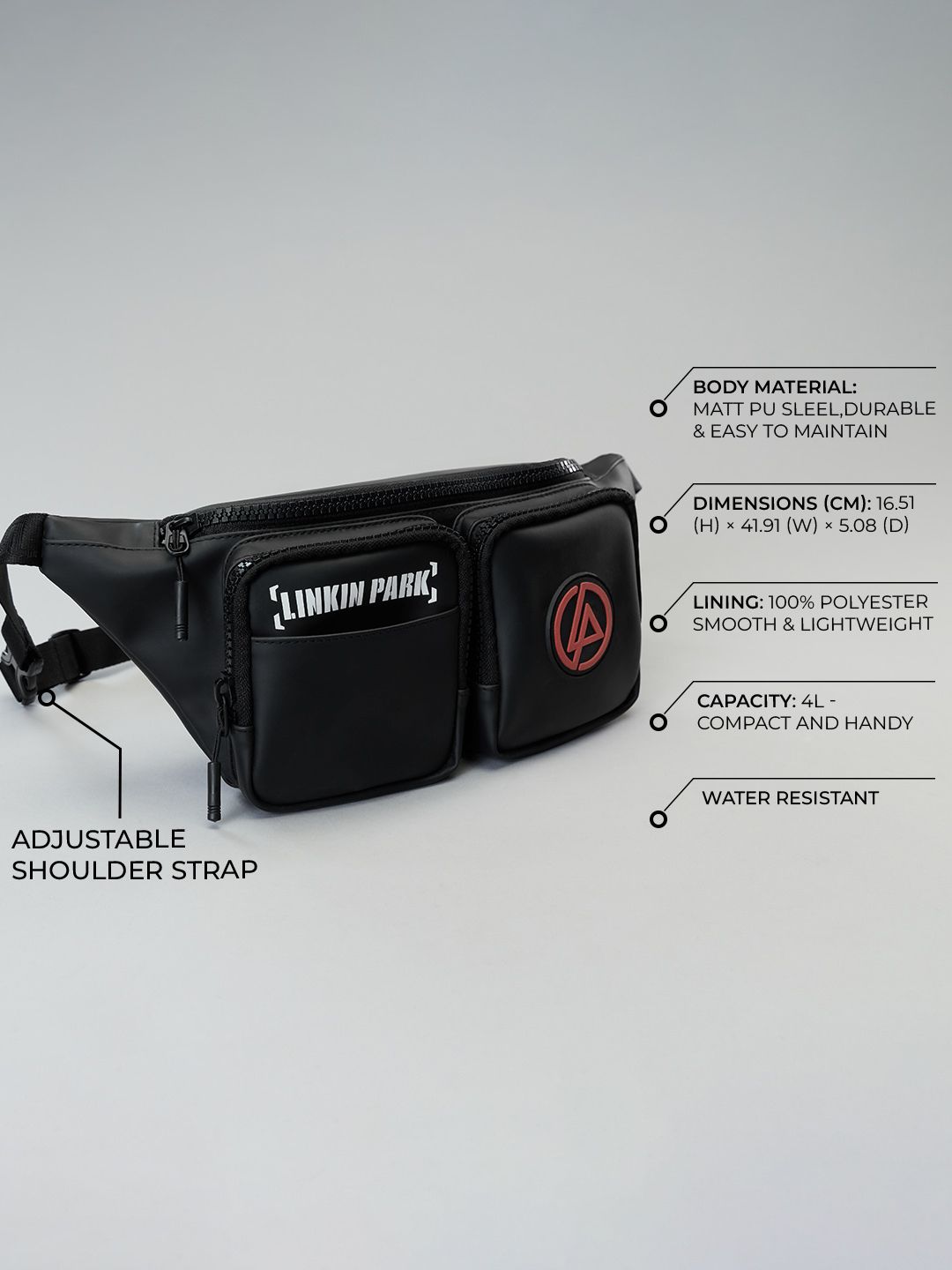 A tough, all-weather fanny pack inspired by Linkin Park’s raw energy and urban edge. Designed for movement, expression, and everyday utility, this compact yet functional pack is built for concerts, travel, and life in motion, carrying the spirit of the band wherever you go.